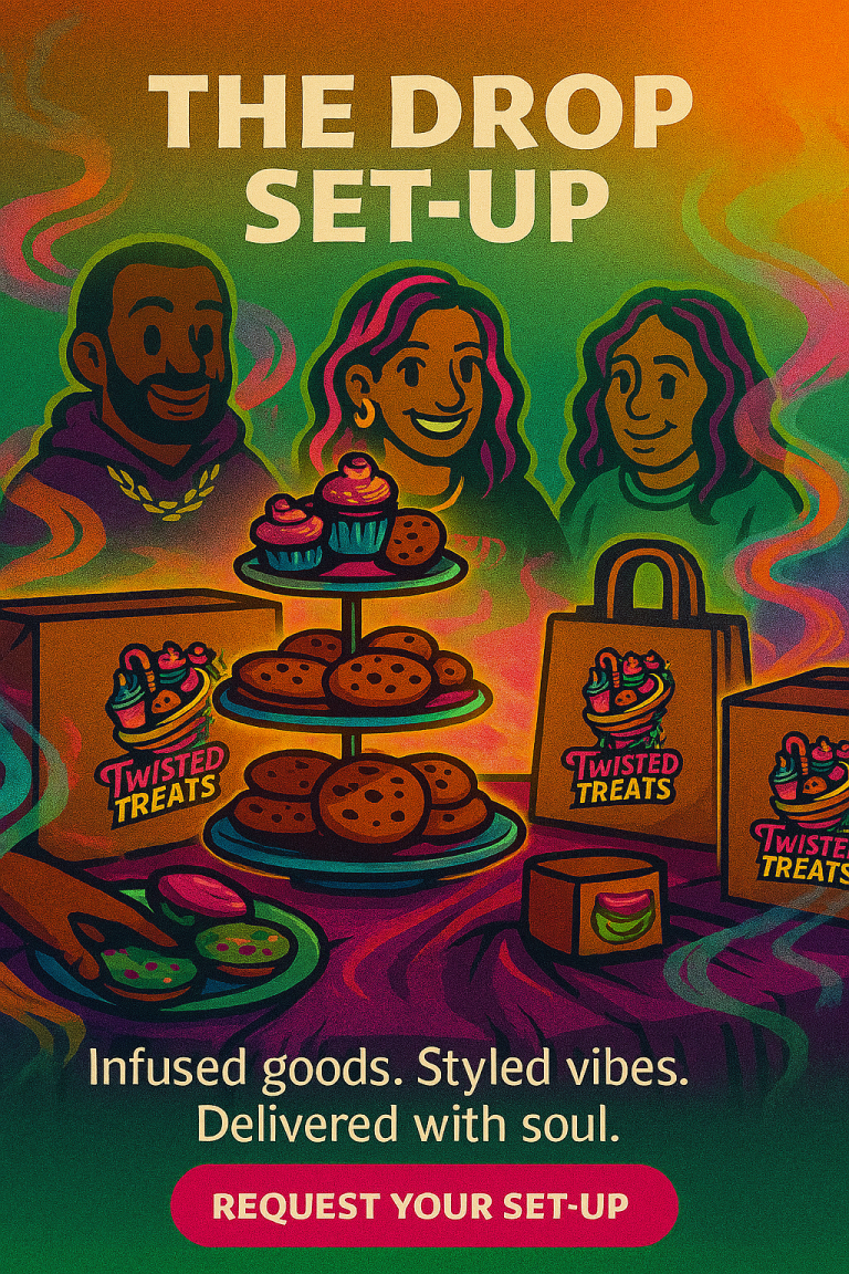 Whether it’s a birthday, pop-up, or drop party, we bring the flavor to your table. Custom-infused treats, branded visuals, and soulful styling — all set up for you.